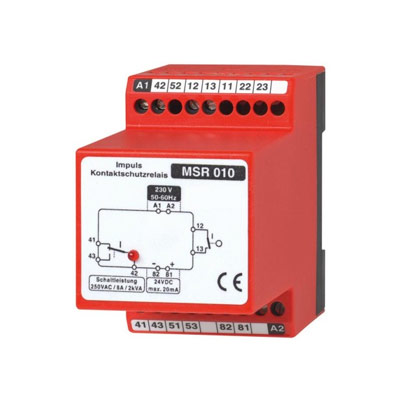 Contact protection relays consist of a power supply unit, control unit, switching amplifier and relay output. The contacts are supplied by a control unit with 35 to 40 V clocked DC (i.e. only every hundredth switching occurs under voltage). This enables the optimum contact protection and switching reliability for millions of switching cycles.